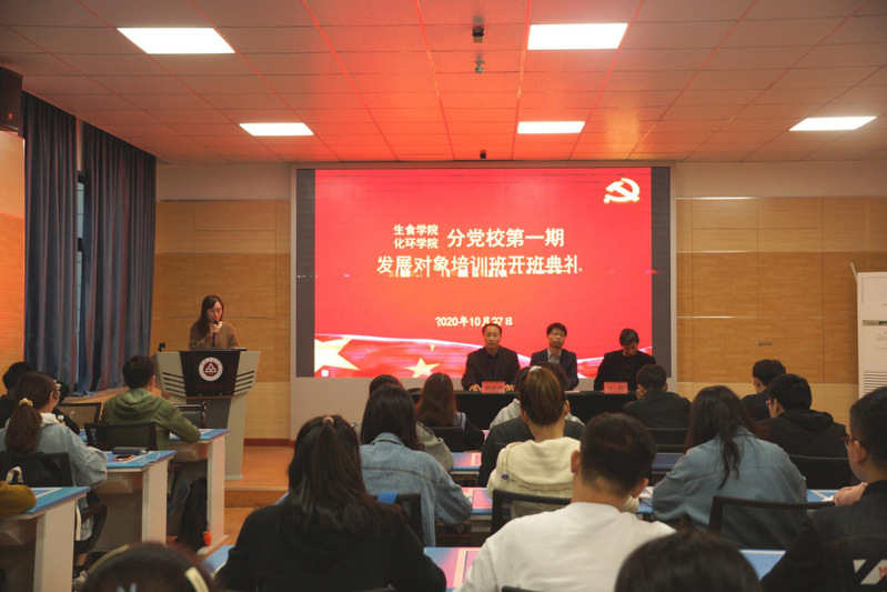 10月27日下午,生食公司、太阳成集团tyc234cc主页两院共同举行2020年第1期发展对象培训班开班典礼,公司党委书记水心宝、生食公司党委副书记王辉、公司党委副书记胡承功出席典礼,培训班55位学员参加开班典礼,典礼由本期班主任程秀仙老师主持。