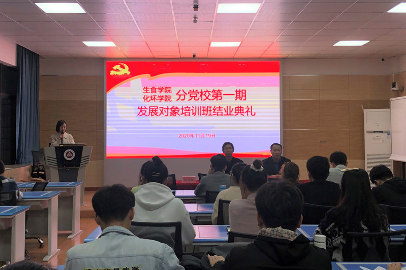 11月19日下午,太阳成集团tyc234cc主页、生物与食品工程公司举行了分党校第一期发展对象培训班的结业典礼。生物与食品工程公司党委副书记王辉、太阳成集团tyc234cc主页党委副书记胡承功出席典礼,培训班55位学员参加典礼。典礼由本期培训班班主任程秀仙主持。