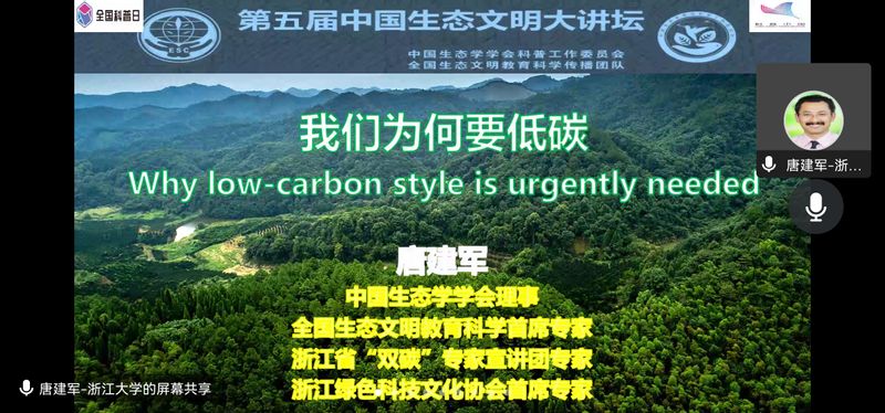 由中国生态学学会、芜湖市科学技术协会和安徽师范大学共同主办的“第五届中国生态文明大讲坛”于11月25日上午9点在海螺国际会议中心开幕。公司太阳成集团tyc234cc主页作为其中的一个分会场,在25日下午3点邀请到此次大讲堂的主讲人,浙江大学卓越A岗教授、全国生态学优秀科技工作者、全国生态文明科学教育首席专家、中国生态学学会理事兼科普工作委员会常务副主任唐建军教授做线上报告。