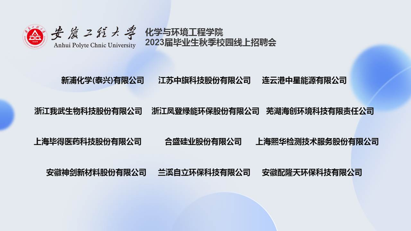 此次活动邀请了新浦化学(泰兴)有限公司、连云港中星能源有限公司、上海熙华检测技术服务股份有限公司以及芜湖海创环境科技有限责任公司等12家省内外优质用人单位进行组团线上招聘,集中于化工新材、药物研发、环境监测等行业,面向公司毕业生提供了工艺工程师、储备干部、研究员等583个就业岗位。