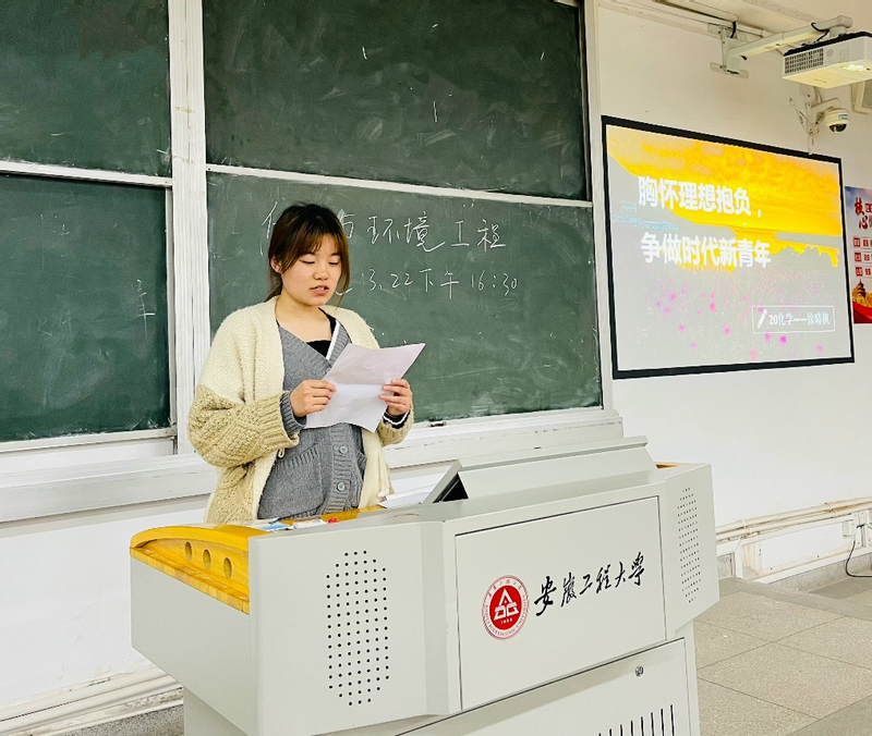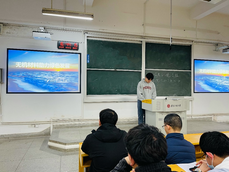 随后,支部成员李瑞分享了自己看法。他提到,自己目前研究的主要方向是无机材料,也了解到诸如新型纳米材料、半导体材料等对于节能减排都有一定的效果。身为化学人的自己也想通过提升专业素养,为建设美丽祖国助力。
