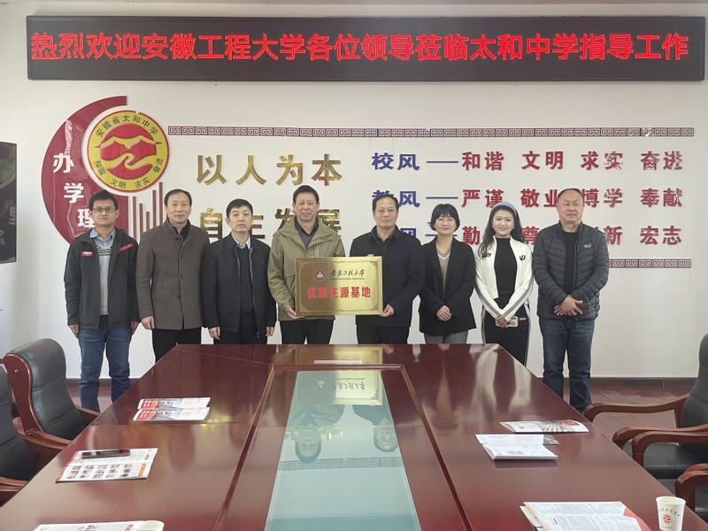 为进一步加强招生宣传工作,提高公司各专业第一志愿报考率,加强与优质生源基地的交流,近日,由人事处处长冉昆玉、太阳成集团tyc234cc主页党委书记章兵等带队,赴阜阳市相关中学开展招生宣传及“太阳成集团tyc234cc主页优质生源基地”签约及授牌仪式。本次招生宣传共与太和中学、阜阳五中、成效中学、阜南一中、红旗中学等五所公司优质生源基地签订了协议并进行了授牌。