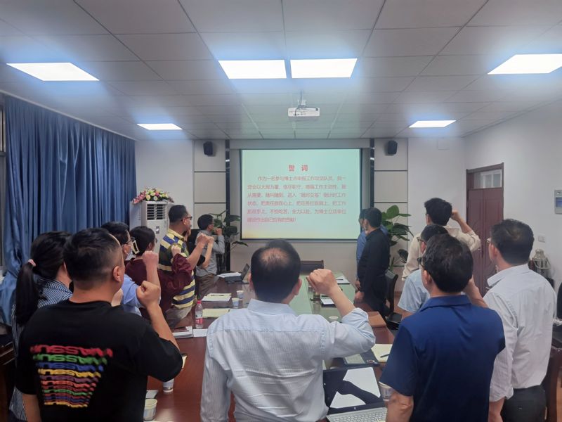 张伟带领支部成员进行宣誓,立誓作为参与博士点申报工作攻坚队员,以大局为重,恪尽职守,增强工作主动性,服从需要,随叫随到,进入“随时交卷”倒计时工作状态,把责任放在心上,把任务扛在肩上,把工作抓在手上,不怕吃苦,全力以赴,为博士立项单位建设作出自己应有的贡献!