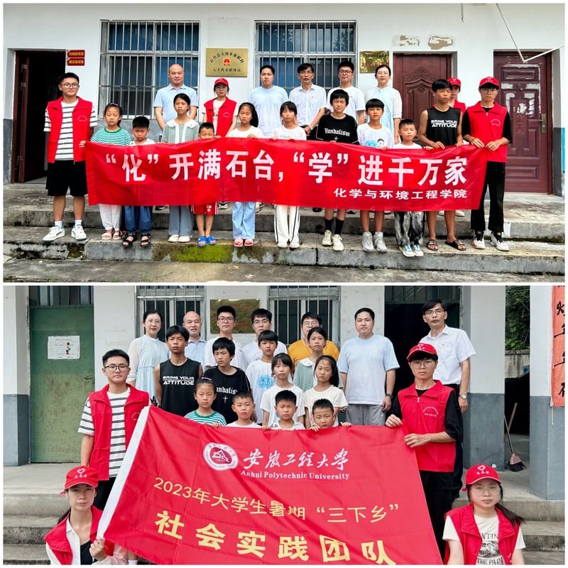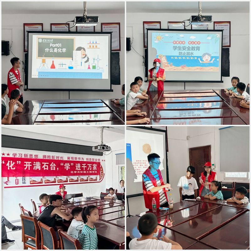 深入学习宣传贯彻习近平新时代中国特色社会主义思想,全面落实党的二十大精神,进一步提高农村儿童科学文化素质,将科普知识送进乡村,助力乡村振兴战略实施,7月6日7月8日化学与环境工程公司“魔法化学社会实践池州市石台县大演乡新联村开展主题为“化”开满石台,“学”进千万家科普知识进乡村社会实践活动。