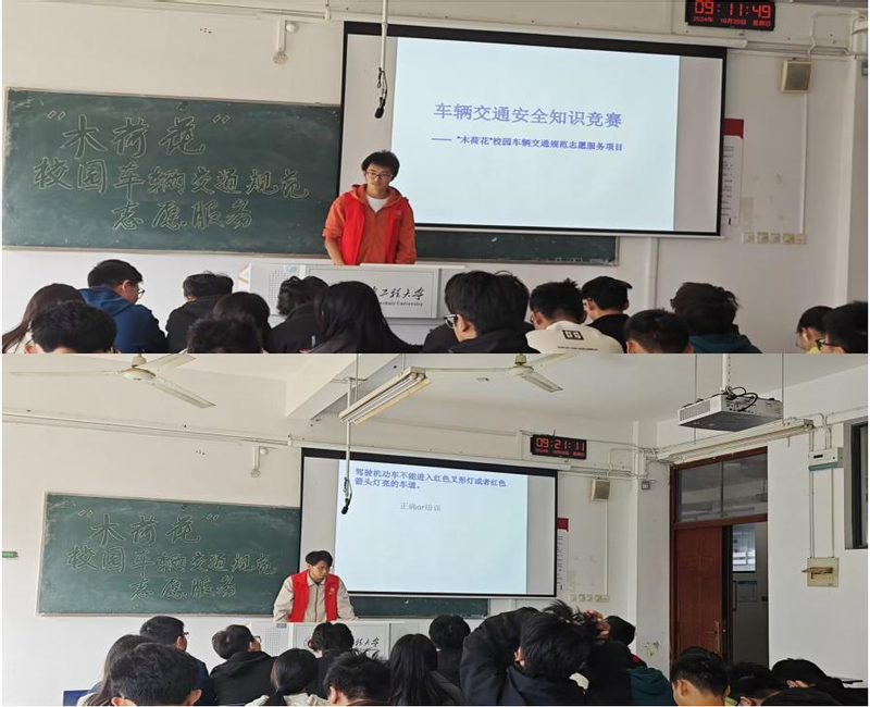 活动前期,为明确交通规则,在轻松愉悦的氛围中普及交通安全常识,项目团队精心策划举办了校园车辆交通知识竞赛,参赛者通过自行组队,以抢答方式答题,竞赛内容涵盖了交通法规、交通常识等多个方面,考察了同学们对车辆交通知识的掌握情况。本次竞赛吸引了众多同学的积极参与,经过初赛的激烈角逐,共有5支队伍脱颖而出,在提高同学们对校园交通安全认识的同时,丰富了校园文化生活。
