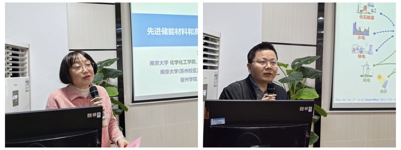 报告会上,金钟教授做了题为“先进储能材料和高性能电池器件研发”的学术报告。金钟教授介绍了传统锂电、固态电池以及液流电池的发展现状,详细介绍了水系液流电池的开发与设计、高水溶性芳香醌类衍生物活性分子用于高稳定性的碱性水系液流电池、吩嗪类衍生物长寿命的碱性水系液流电池、多阳离子型延伸π共轭紫精及TEMPO衍生物分子用于高电压、长寿命的中性水系液流电池以及超越传统液流电池体系的新型水系“胶体”液流电池等有关内容和进展。期间,金钟教授就师生提出的学术问题进行了详细耐心的解答,现场师生深受启发。