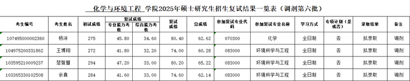 2025年硕士研究生招生复试结果一览表(调剂第六批)