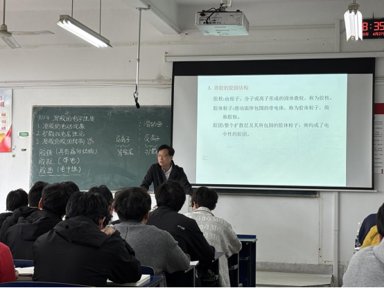 本次示范教学由吴友吉老师主讲,讲授课程为《物理化学I(2)》。吴友吉老师凭借其丰富的教学经验和扎实的专业功底,从基础理论出发,逐步深入到复杂问题的解析。课堂上,吴老师通过清晰的逻辑和生动的语言讲解了溶胶的电动现象、扩散双电层理论和溶胶的胶团结构,将抽象的物理化学概念具象化,使员工们能够更加直观地理解其中的原理。为了及时掌握员工对知识的理解程度,增强课堂提问、上黑板答题环节,针对普遍存在的疑问给予详细解答。这种即时反馈机制不仅提高了课堂效率,也激发了员工的学习兴趣。