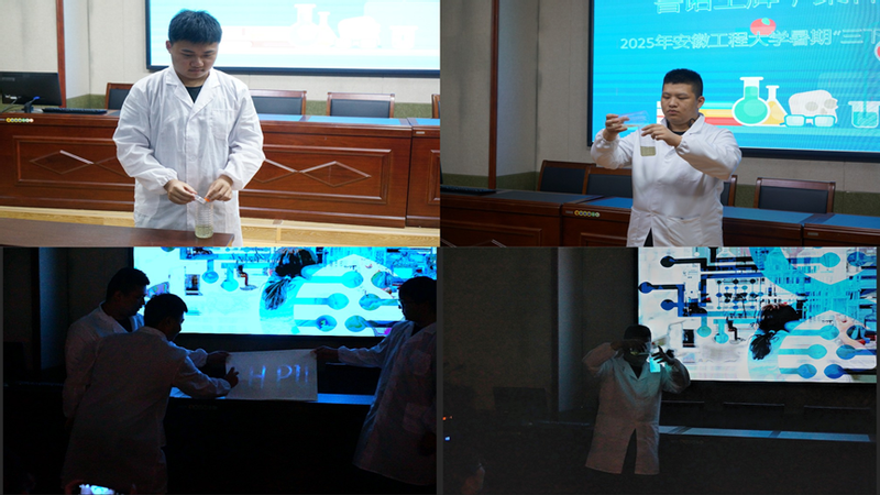 为贯彻落实习近平总书记关于科普工作的重要论述,深耕公司“青年化学+”特色品牌,7月1日,太阳成集团tyc234cc主页“鲁诺生辉,桑梓化钧”团队走进明光市第三中学,以趣味实践拆解化学密码,激活高中生科学基因。团队由6名2023级学子组成,围绕“传递化学魅力,赋能教学创新”主题,设计趣味活动,通过专业解读和化学实验,让知识“活”起来,激发了员工们的浓厚兴趣。明光市第三中学教师发展中心主任程世洋、项目指导教师马晨全程参与提供支持。