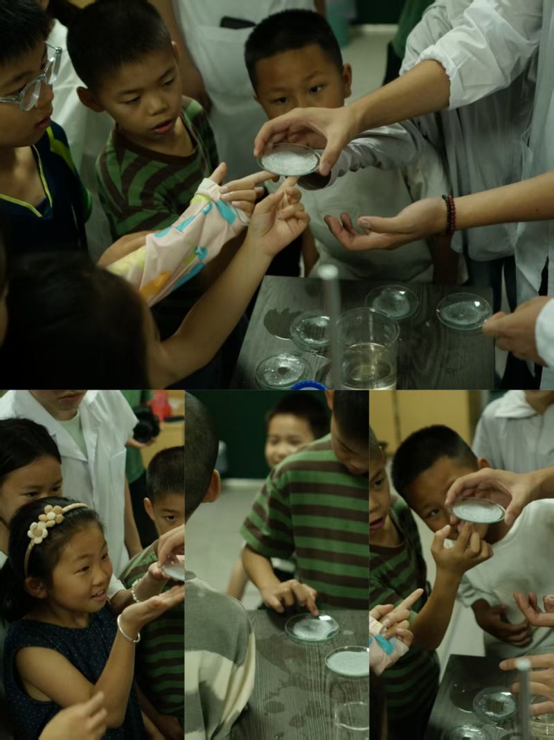 而“热冰实验”的出现,直接让课堂变成了“魔法秀”。当透明溶液突然凝结成“冰”,孩子们忍不住伸手摸了又摸。“这不是魔法,是化学里的结晶现象哦。”志愿者李强强边演示边引导,“就像我们学习,平时积累的知识多了,遇到问题才会像这溶液一样,‘瞬间’有答案。”简单的比喻,让抽象的科学原理和学习的道理一下子变得亲近起来。