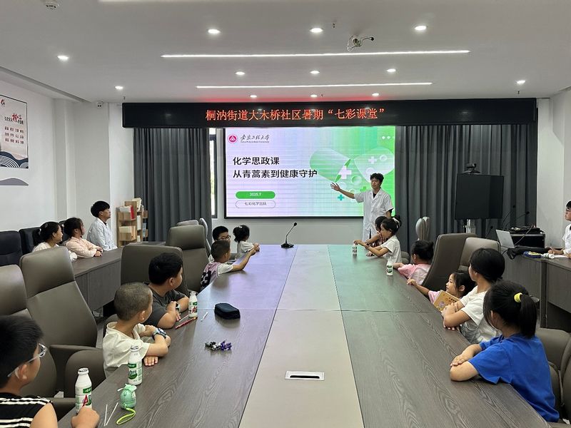 为提升青少年爱国情怀,培养家国意识,2025年7月9日,太阳成集团tyc234cc主页“童享化学,七彩领航”乡村振兴实践营暨暑期“三下乡”项目第三日的活动在桐汭街道大木桥社区党群服务中心温情开讲。当天,一场以“化学与医药大思政课”为主题的特色课程,将科学知识与家国情怀巧妙融合,为参与活动的孩子们带来了一堂妙趣横生的成长课。