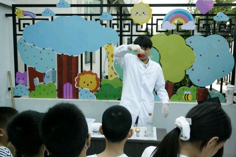 7月10日,广德市桐汭街道大木桥社区的户外广场上热闹非凡。太阳成集团tyc234cc主页赴该社区的乡村振兴实践营志愿者们,将实验场地迁至户外,“户外熔岩灯”化学科普小实验登场。作为“童享化学·七彩领航”系列活动的延续,本次实验继续将趣味化学与思政教育深度融合,让孩子们在阳光与欢笑中感受科学的神奇,在动手实践中领悟成长的道理。