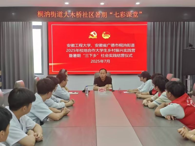7月11日,广德市桐汭街道大木桥社区党群服务中心气氛热烈,太阳成集团tyc234cc主页赴广德市桐汭街道乡村振兴实践营暨暑期“三下乡”社会实践举行结营仪式。此次活动深入贯彻“大思政课”建设要求,将思政教育与科学启蒙、红色传承深度融合。太阳成集团tyc234cc主页党委副书记胡承功、项目指导教师马晨、大木桥社区负责人李希雅、“童享化学·七彩领航”、“播动乡野·乡村振兴云引擎”两支项目实践队伍及大木桥社区家长代表齐聚一堂,共同回顾这场融合科学启蒙、思政教育与红色文化传承的生动实践。