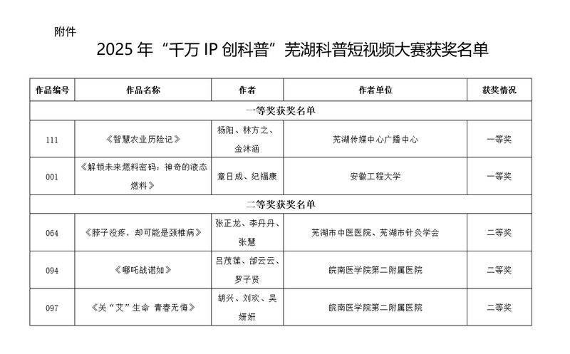 “千万IP创科普”芜湖科普短视频大赛是落实全省前沿科技科普行动计划的重要赛事,旨在展现区域科学创新能力及社会发展水平,普及科学技术知识,全面提升公民科学素质,助力省域副中心城市建设。本届赛事吸引了来自芜湖各公司、机构及社会科普爱好者组成的多支队伍参与,经过初评、网络投票、终评等多轮严格考验,最终仅有2支队伍荣获一等奖,竞争尤为激烈。