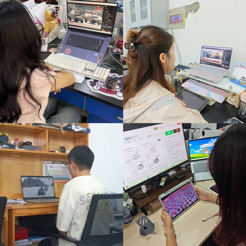 公司将员工能力发展中心会议室设为线下主会场,公司党政领导、全体教师及员工代表有序就座,现场氛围庄重而肃穆。观看过程中,师生们全神贯注,时而认真记录重要讲话要点,时而为阅兵仪式上展现的大国风采深深触动,现场不时响起阵阵掌声。同时,组织未能到场的师生通过电脑、手机等设备,在实验室、办公室、宿舍等地同步收看,共同见证这一具有历史意义的时刻。