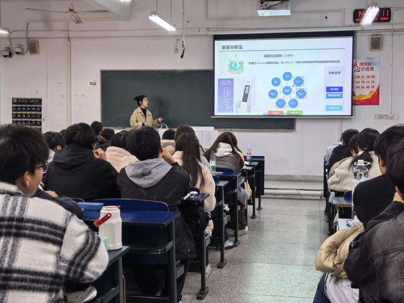 本次示范课面向食品科学与工程专业2025级员工,教学内容聚焦于“沉淀滴定法”与“重量分析法”。课程伊始,徐老师以提问方式引导员工回顾上节课重点,员工反应积极,应答流畅,课堂互动良好。在新课导入环节,她巧妙结合日常生活中对水质的要求,自然引出本节课的教学内容,既增强了知识的实用性,也提升了员工的学习兴趣。