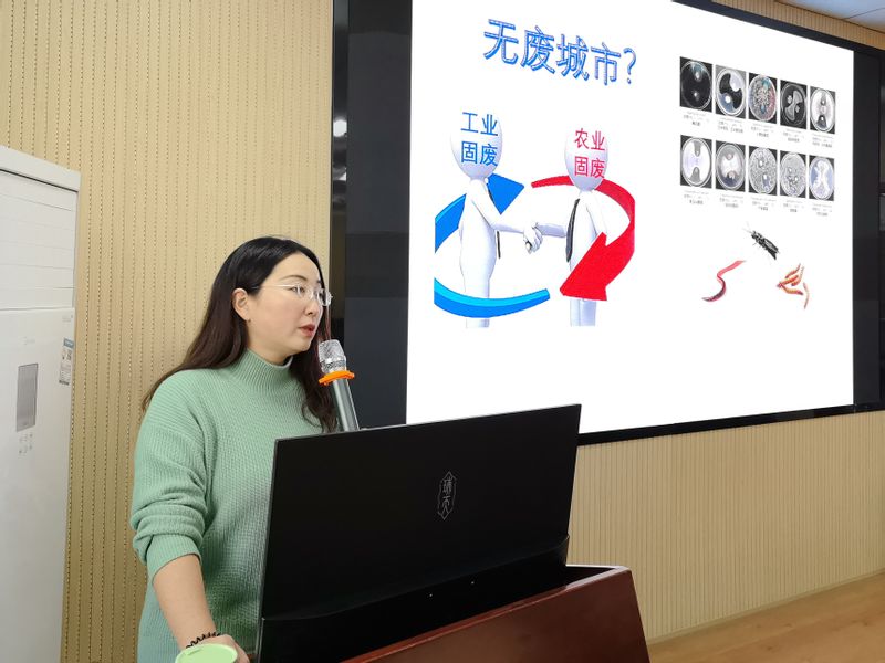 毛晓霞教授是安庆师范大学“天柱学者”、安徽省科技特派团团长,长期从事固废资源化与生态修复研究。报告中,她以“黑水虻虫菌互作技术在种养循环中的应用”为题,系统介绍了利用黑水虻幼虫与微生物协同作用,将畜禽粪污、菌渣等有机固废转化为虫沙生物菌肥与蛋白饲料的前沿技术,并分享了该技术在土壤改良、病害防治及科技特派员示范基地建设中的具体应用案例。