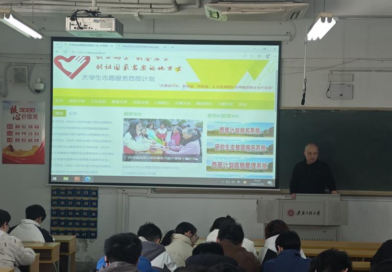 班会上,辅导员老师详细解读了老员工志愿服务西部计划的政策内容、招募流程、服务保障及发展前景,并结合近年来公司参与西部计划毕业生的典型案例,生动讲述了志愿者们在教育、医疗、乡村振兴等领域的奋斗故事,让同学们直观感受到西部计划的深刻意义和广阔舞台。互动交流环节,辅导员老师们就服务地点、专业适配、职业发展等疑问注意解答,切实化解同学们的顾虑。老师们鼓励大家主动报名,积极响应号召,到西部去、到基层去、到祖国和人民最需要的地方去,在西部建设的舞台上书写青春华章。